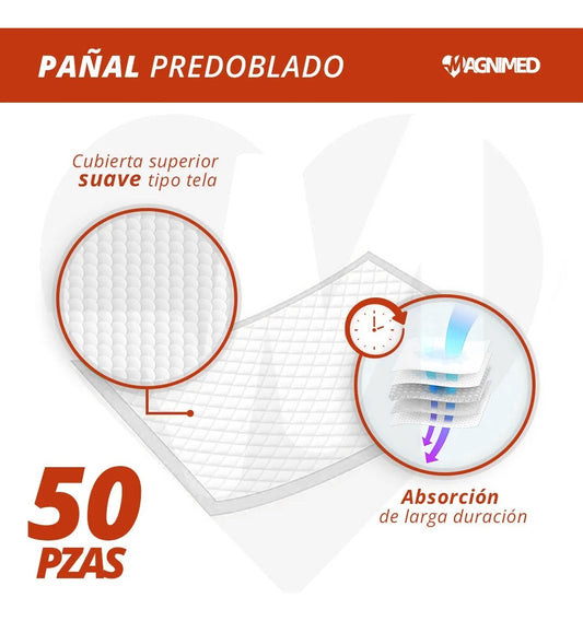 Pañal Predoblado / Protector De Cama Adultos (Unitalla) - 50 Piezas