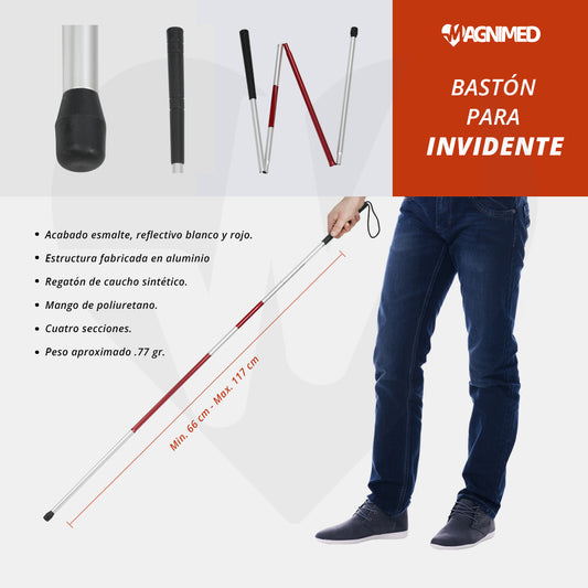 Baston Para Invidente Ciego Plegable Ajustable Con Reflejante Plateado
