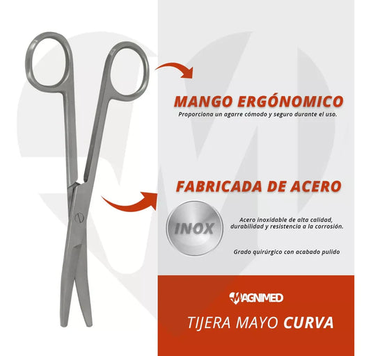 Tijera Pinza Mayo Curva Acero Inoxidable