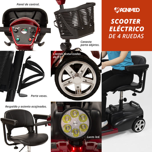 Silla De Ruedas Scooter Eléctrico Plegable Recargable De 4 ruedas Color Rojo Luz Led