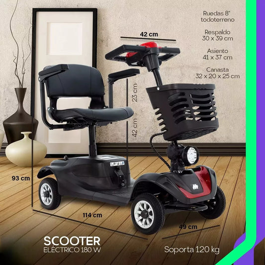 Silla de Ruedas Scooter Eléctrico Todo Terreno Plegable 4 Ruedas Luz Led Color Rojo