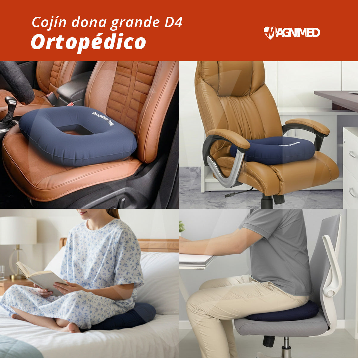 • Ideal para personas con problemas de próstata o hemorroides, proporciona soporte ergonómico que reduce la tensión durante períodos prolongados de sedentación.
